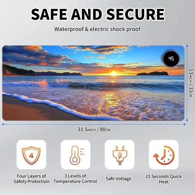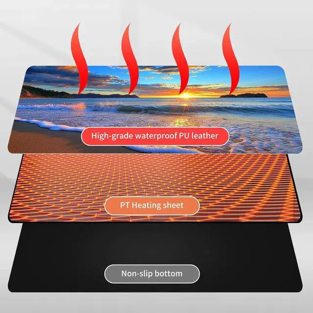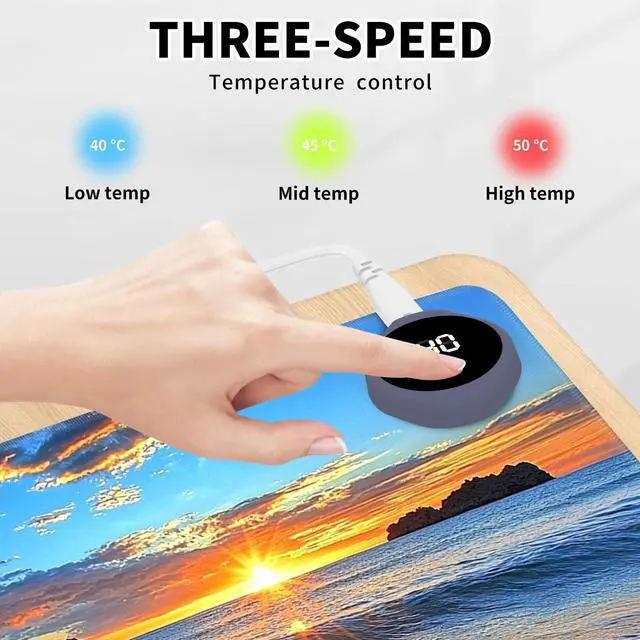 DayMulti-Functional: This warmer mouse pad also can be used as a gaming mouse mat, table warm pad, foot warmer pad, pet warmer pad. It will give you many surprises about its usage. It can keep you warmer through the cold winter. Keep warm anytime and anywhereThe heated desk mat has three temperature settings(40C, 45C, or 50C) and digital display, allowing you to customize the heat level according to your preference. The double-layer heating sheet of mouse pad enables rapid heating, just 15 seconds, you can feel significant heat. Uniform and stable heating can make your body warm anytime, anywhere in the winter.
