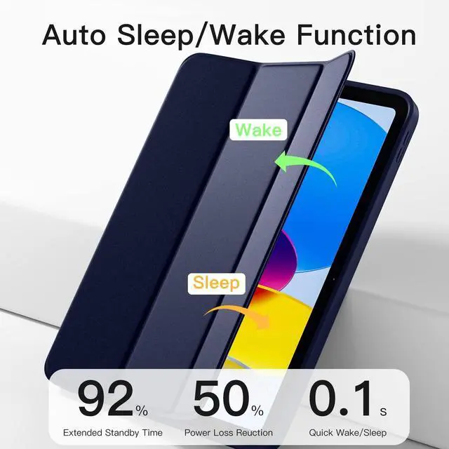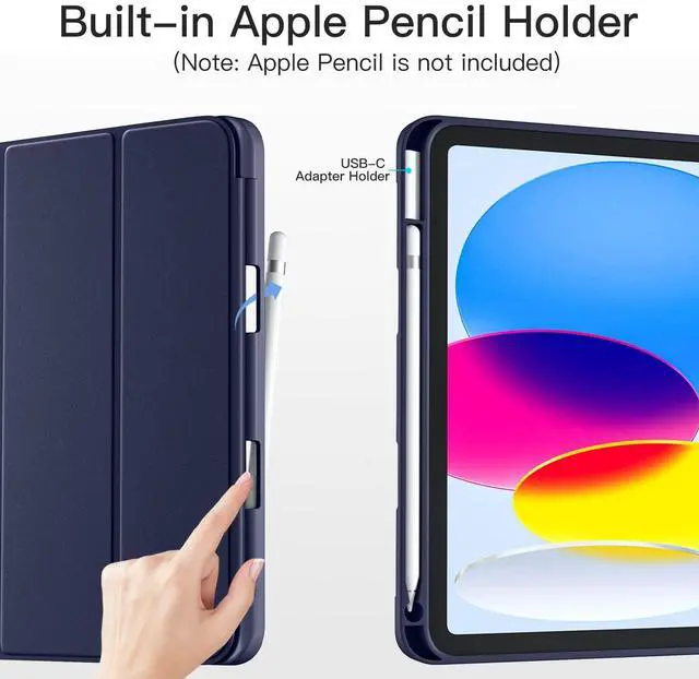 Auto Sleep/Wake Function: Inside with magnet stripe in front cover, will automatically wake up your 10.9 inch iPad when opening the front cover or put your iPad to sleep while closing it, this can reduce power consumption and extend the standby time of your iPad 10th generation maxmiumly. ^^ Built-in Apple Pencil 3rd/1st Generation & Charging Connector HolderThere are slots for Apple Pencil(3rd/1st Generation) and charging connector. It's easy to place and remove your pencil, keep the pencil as safe as your iPad all the time. With charging connector slot, you can charge your Apple pencil any time and don't worry your connector will be lost.