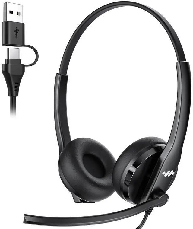 Necode Headset with Microphone for PCUSB Wired Computer Laptop Headset with Noise Cancelling Microphone, Work Headphones with Mic for Home Office Teams Zoom (USB-A&C)