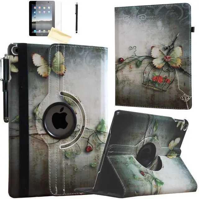 JYtrend Smart Case for iPad Air 1st /Air 2nd Generation (9.7 in) with Pencil Holder, Rotating Stand Magnetic Auto Wake Up/Sleep Cover for iPad Air 1/2 A1474 A1475 A1476 A1566 A1567 (Butterfly Flower)