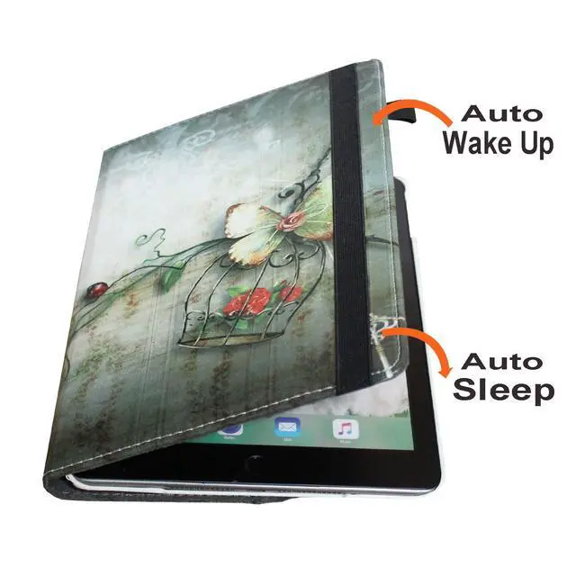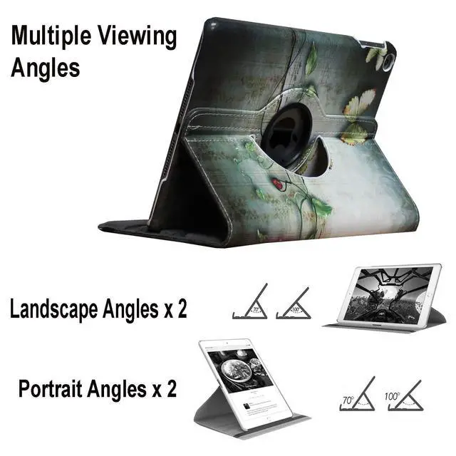 Models: A1474, A1475, A1476, A1566, A1567 ^^ Auto wake up and put your iPad to sleep ^^ 360 degrees Rotation in the case for flexible landscape and portrait viewing ^^ Dual Layer hard shell mount and premium synthetic leather exterior perfectly protects the device against damage and scratches. Elastic band holds iPad closed securely while on the go. ^^ Bult with a pen holder. Full accesses to all features and ports