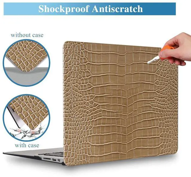 Features: Made of PU leather and PC materials, protecting your laptop from scratches and and everyday damage. The rich, textured look of crocodile/alligator skin adds a tactile dimension to your device. Thoughtfully designed with a perfectly positioned cut-out for the logo. Snap-on design, easy to put on and remove. Fully access to all ports and buttons. The additional silicone keyboard skin protecting your keys from dust, spills and crumbs. Bottom vents help keep your laptop cool and four non-slip rubber pads keep your laptop in place. Snug fit, ultra-thin and lightweight, it won't add any noticeable weight or bulk to your laptop. Each piece of faux crocodile leather is crafted with its own unique natural grain. True luxury should be as unique as you are!