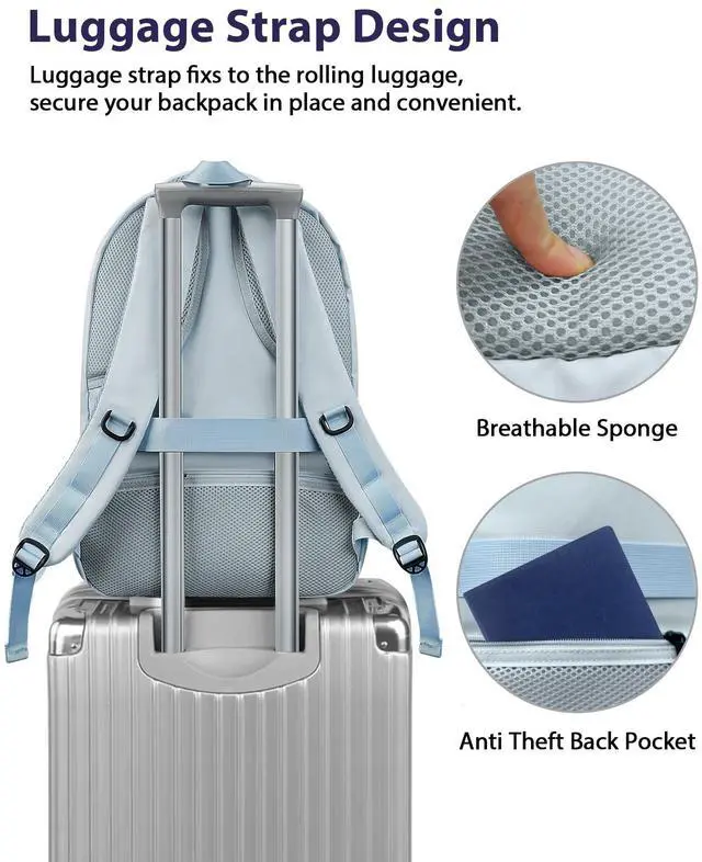 Anti Theft & Organization: Multiple pockets of this extra large laptop backpack offers plenty of room. Luggage strap allows a large mens computer backpack to be quickly attached to travel suitcase by sliding it over the upright handle, making it easier to carry. An theft proof pocket on the back of the backpack for women 50l could protect valuable items ^^