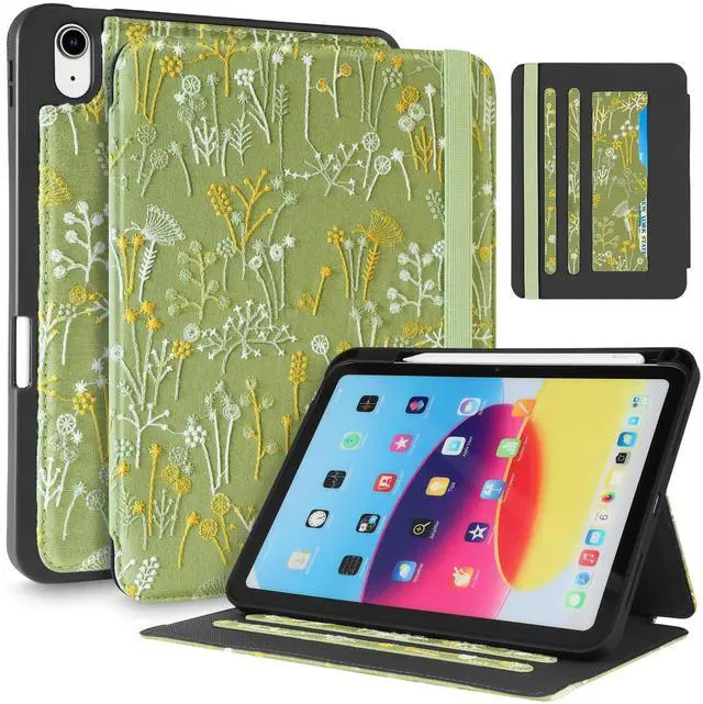 Card Slots & Auto Sleep/Wake: This embroidered tablet case has two card slots for bank cards, business cards and other cards. Built-in magnetic strip, this for iPad 10th/11th gen cover has an auto sleep/wake feature, no wasting the power energy and extend your iPad standby time. ^^