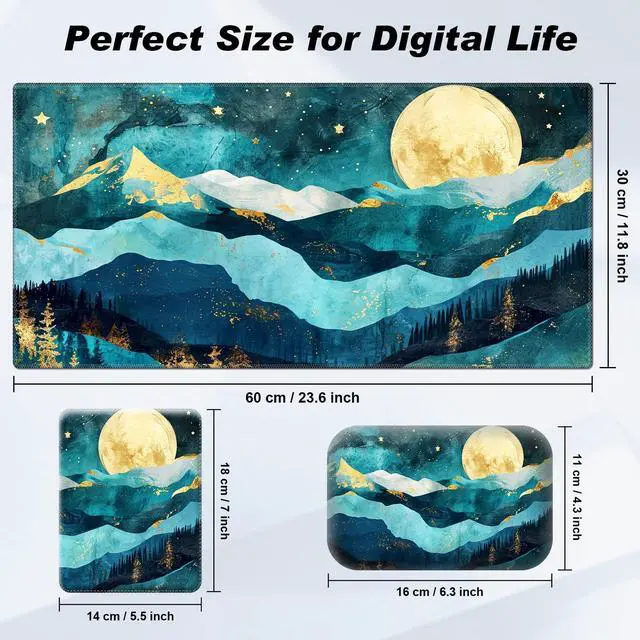 Elevate Your Desk Experience with the Ultimate 3-in-1 Mouse Pad Set! Unleash the full potential of your workspace with our comprehensive mouse pad set, meticulously designed to enhance your gaming or office setup. This all-in-one solution brings together functionality, comfort, and vibrant aesthetics in a single package.