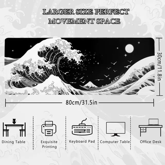 Functional Design: Measuring at a spacious 31.5 x 11.9 inches, this desk pad provides ample room for your mouse and gaming keyboard. It delivers superior control for both your keyboard and mouse, offering a comfortable gaming or working space ^^