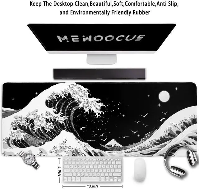 Water-Resistant and Durable: Our mouse pad boasts double-stitched edges that protect against wear, deformation, and fraying. With a special water-resistant coating, it shields against spills and liquid damage. Any liquid simply forms droplets and slides off, and for cleaning, use a damp cloth or machine wash and air dry. This durable and wave mouse pad safeguards your desk from scratches, stains, spills, heat, and scuffs