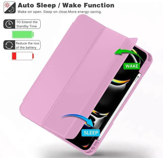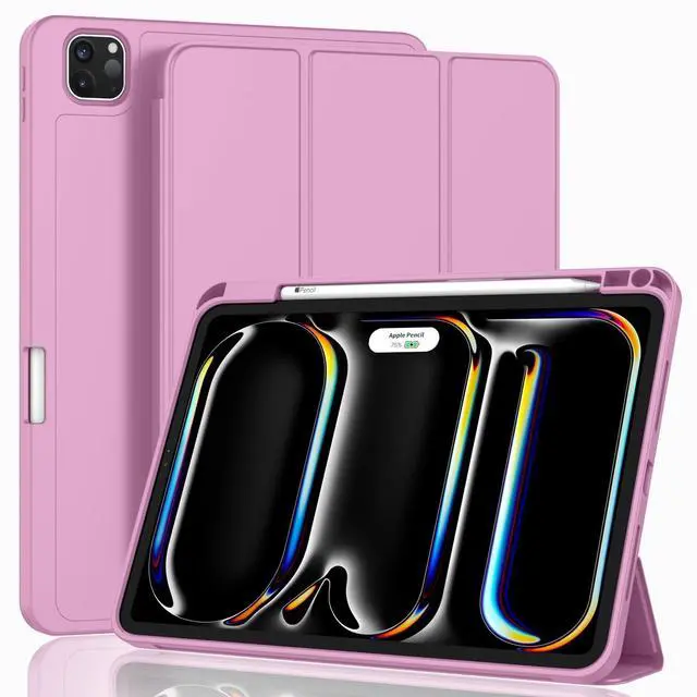 ZryXal New iPad Pro 13 Inch Case (M5) 2025 / (M4) 2024 with Pencil Holder, Smart iPad Case [Support Pencil Pro and Pencil (USB-C)], Support Touch ID and Auto Wake/Sleep (Pale Violet Red)