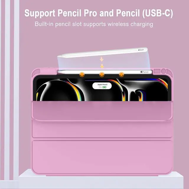 [Supports Pencil Pro and Pencil (USB-C)] This iPad Pro case fully supports Pencil 2 with a recessed side groove for magnetic charging and a magnetic clasp to keep your Pencil secure