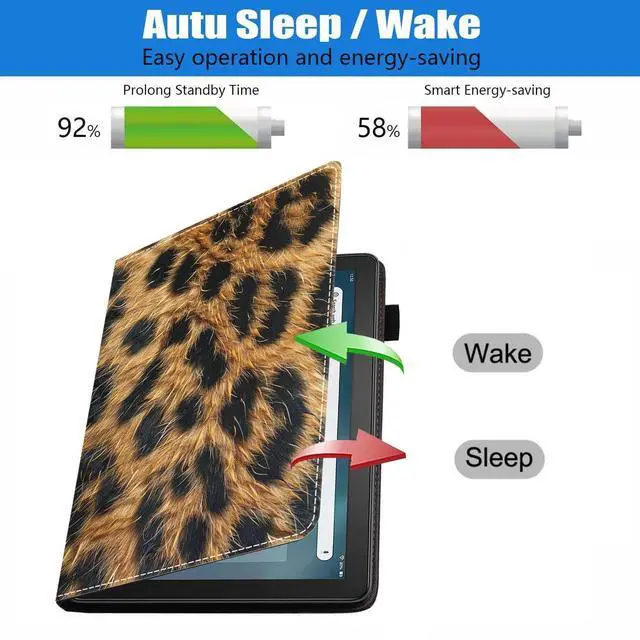 Perfectly decor your tablet, Beauty and function come together. Made of High end PU leather, features shockproof, protective smooth outer casing and sturdy exterior with soft microfiber interior keeps your tablet screen safe. Convenient multi viewing kickstand for watching movie or typing. Great for holding in landscape mode to watch videos. Designed with 3 delicate card slots inside for you to carry your necessary cards. There is a flexible pencil holder at the edge of the shell for keeping your stylus in place (Stylus is not included). Provide auto sleep/wake, Open the case to wake up and close the case to shut off, Saved power.