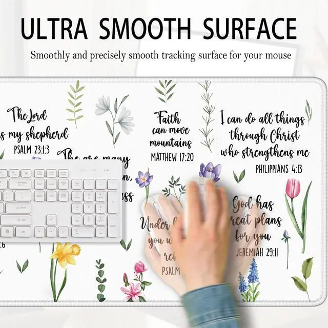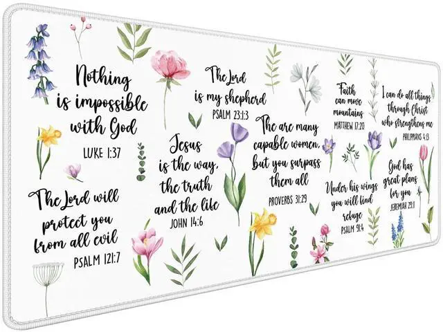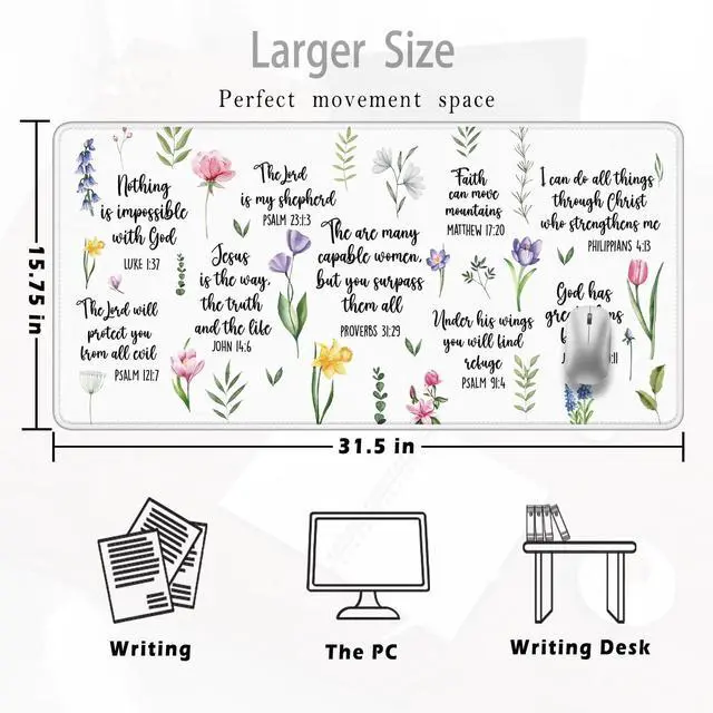 Foritho Christian Inspirational Floral Large Mouse Pad 31.5x15.7inch, Religious Bible Verse Large Extended Computer Desk Mat Mousepad for Keyboard and Mouse, Christian Desk Accessories