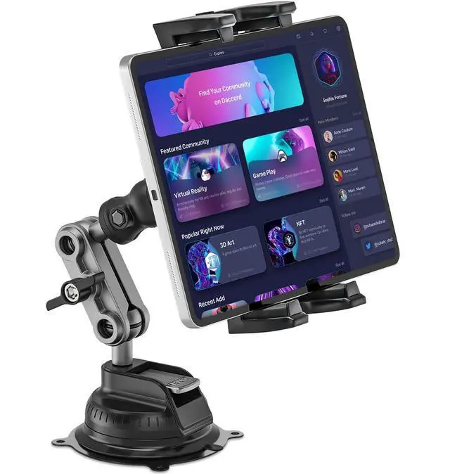 Play: Ideal for both business and personal use, this tablet car holder can be installed on any smooth surface using the suction cup or adhesive base. Its perfect for vehicles, homes, offices, kitchens, and schools, offering a secure and convenient solution for hands-free tablet use.