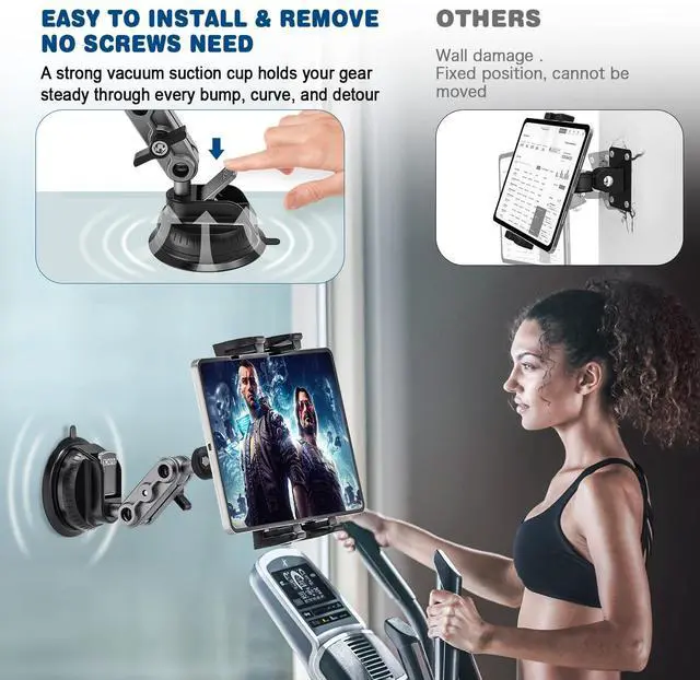 Mount for Truck: This car tablet holder with strong suction cup and metal base easily attaches to windscreens, dashboards, consoles, desks, walls, tables, glass or other smooth surfaces, and is suitable for cars, trucks, semi-trailers and RVs. The suction cup is very strong and ensures that your tablet/phone stays stable while driving on bumpy roads and will not slip or fall.