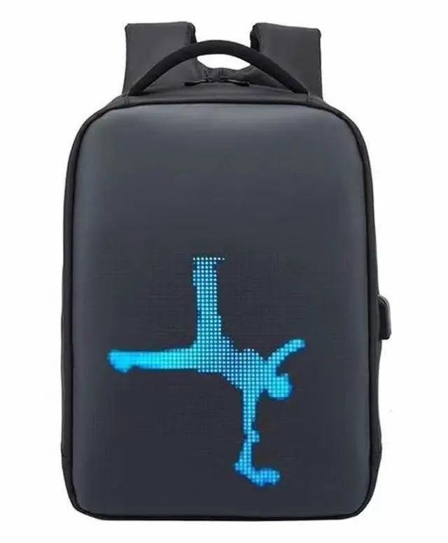 DescriptionLED Backpack with Programmable Screen, 17 Inch App Control Light up Backpack DIY Pixel Animation ^^ Waterproof LED Bag ^^ Cool Men's and Women's Gifts Customize LED full-color screen animations/graphics and text freely through a mobile app, paired with a 10000mAh power bank (self provided) with a long-lasting battery life of 6 hours. The 21L large capacity waterproof case and breathable back pad design are not only personalized equipment for commuting travel, but also eye-catching cool gifts.