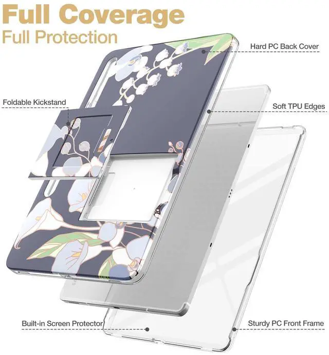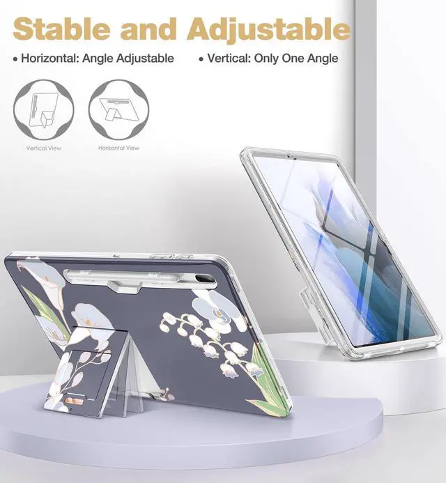 ^^ Adjustable KickstandOur case for Samsung Tab S7 FE includes a built-in kickstand that can provide different viewing angles, free your hands when watching shows, movies or playing games. It can be folded back when not in use. ^^ Keep S-Pen Well OrganizedBuilt-in stylus holder at the back of the case, provides as nug place to store your S-pen, also supports stylus magnetic attachment and wireless charging. (S-PEN is not included) ^^ Precise cutout and Perfect fitSURITCHs flower pattern series cases are stylish and elegant design, which not only adds protection to your tablet but also fits it beautifully.