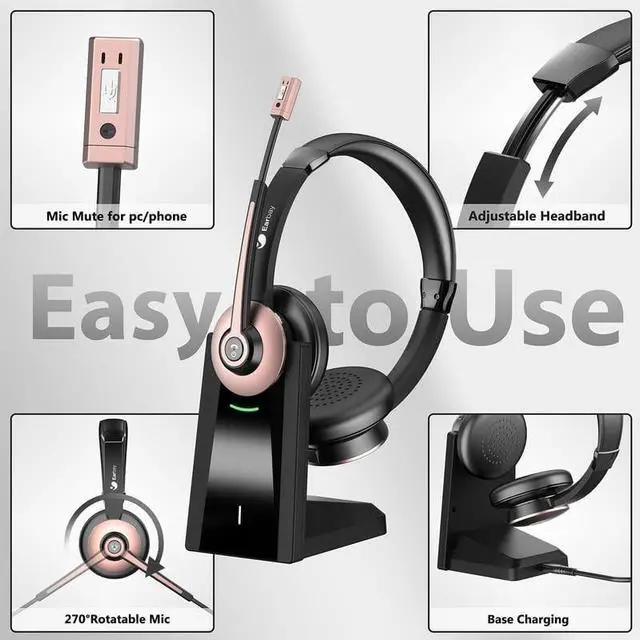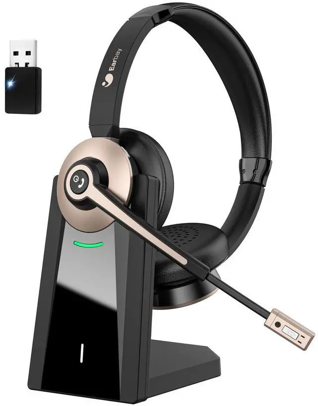 NOTE: This office headset can't be used for desk phones or landlines. With a wireless range of up to 49 feet/15m, you can freely move around while using the work headset. ^^ Dual Device ConnectivityThe headset with microphone for pc can be paired with 2 devices at the same time effortlessly, also widely compatible with most computers, laptops, desktops, cell phones and tablets. Earbay wireless USB headset works with many voice applications including: Zoom, Skype, Teams and more, designed for remote work, office, meetings, trucker driver, classroom and call center, etc. ^^ Charging Base & Battery LifeTo offer better charging and storage solution to user, Earbay wireless headphones with microphone providing an impressive 26 hours of use after full 2 hours charge. Please enjoy long periods of use without needing to recharge often. Type-C cable & powerful charging base are included, your wireless usb headset always ready and organized, which ideal for most computers, cell phones, ^^ Comfort & WarrantyEquipped with soft ear cushions and adjustable headband, this wireless headset for work protects your ears from getting hurt and brings your all day comfort. Rotatable boom mic (Maximum 270) of this computer headset can be adjusted for ideal position and capture better voice positioning. Besides, 1-year warranty and 24-hour support is included, If you have any questions please kindly contact our support.