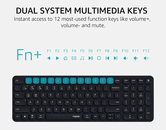 ^^ 5-DPI Adjustable Silent MouseProvides good portability and ergonomics for small hands or fingertip grip, with 5 preset DPI (800/1000/1200/1600/2400) switchable for smooth tracking on different resolution monitors. ^^ Multimedia KeysSupport Windows and Mac OS dual system shortcuts to 12 widely used function keys like play/pause, volume+/- and more. ^^ Aesthetic and Heavy Duty DesignAdapts aluminum alloy frame with matte antioxidant finish, adding a delicate texture and aesthetic look to your setup. Experience an enhanced convenience, reliability, and stability with RAPOOs latest blade-series keyboards. ^^ Refined