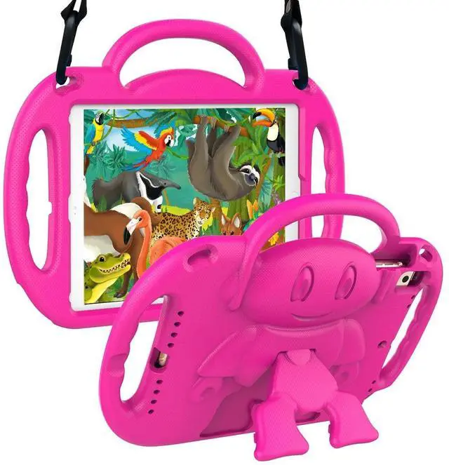 SUPLIK Kids Case for iPad 5th/6th Generation (9.7 inch, 2017/2018), iPad Air 1 & Air 2 & Pro 9.7 Case with Shoulder Strap Handle Stand for Apple iPad 5/6 & iPad Air 1st/2nd Gen, Pink