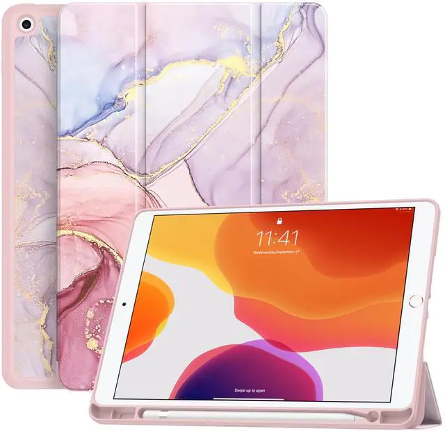 (Tip: Do Not fit with other devices) ^^ [Designed for your Apple Pencil] - Built-in pencil holder, conveniently place and remove your pencil, no longer worry about losing or breaking. Keep the Apple Pencil safely in your cover (Pencil is Not included) ^^ [Designed for Full Protection] - Made of durable PU leather exterior & soft microfiber lining & flexible TPU back shell for iPad 9th/8th/7th generation provide full protection against fingerprints, shocks, bumps and scratches ^^ [Designed for Auto Sleep/Wake] - Inner magnetic strip, easy snap on and off, can ensure the auto sleep/wake function engages quickly every time. Help you extend for the ipad 9/8/7 gen standby time and reduce the loss of battery ^^ [Designed for Trifold Stand] -Two angles are provided that you can easily prop up for the ipad 9th/8th/7th gen 10.2 inch with dual standing positions for enjoying the most comfortable keyboard-typing and movie-viewing