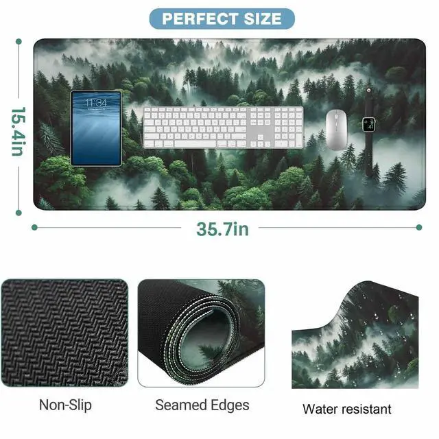Y YIHANGBEST Mystical Forests in The Mist Large Gaming Mouse Pad Mysterious Wooded Area Long Mousepad Non-Slip Rubber Base Keyboard Mat for Desk,Office,Home 35.4"X15.7"