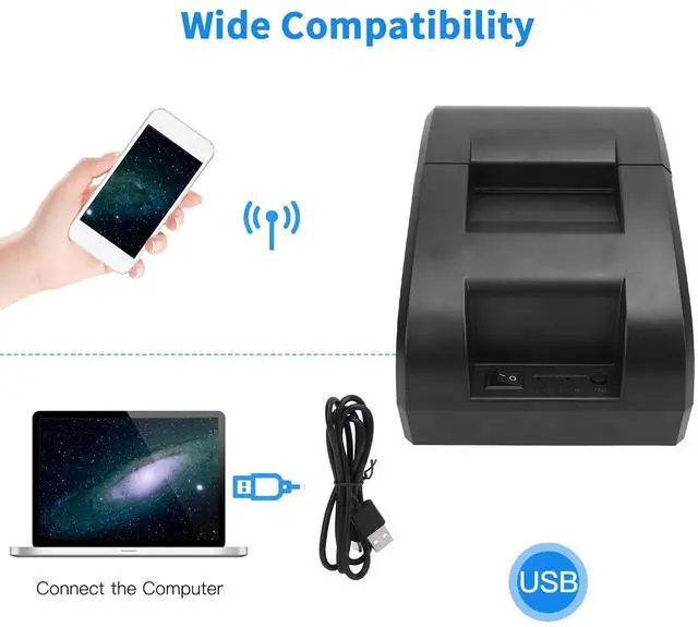 OPERATING SYSTEM COMPATIBILITY: This thermal receipt printer supports multiple operating systems, including for Android, for Wins, and for Linux, ensuring compatibility with nearly all smart devices on the market, greatly enhancing usability and flexibility.
