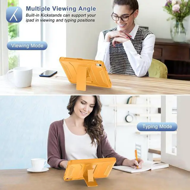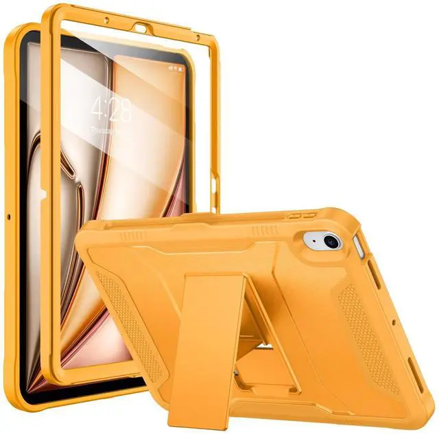 Soke Case for iPad Air 11-inch M3/M2 (2025/2024), iPad Air 5th/4th Generation 10.9-inch (2022/2020), with Built-in Screen Protector and Kickstand, Rugged Full Body Protective Cover - Citrus