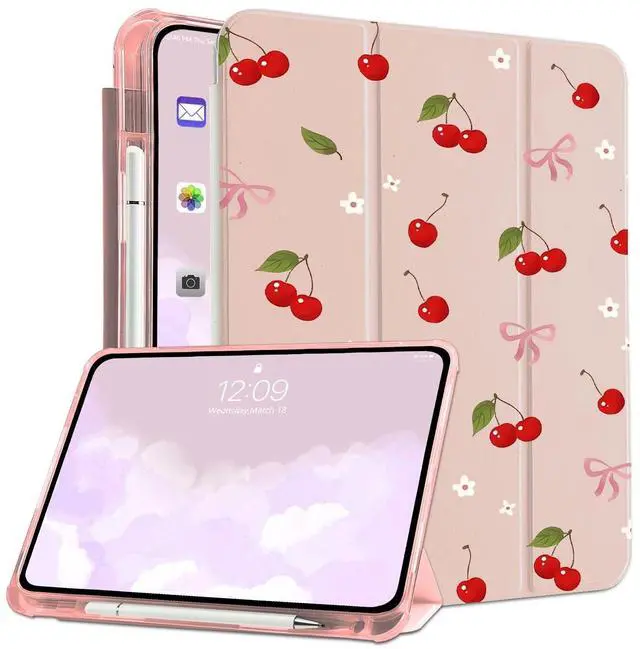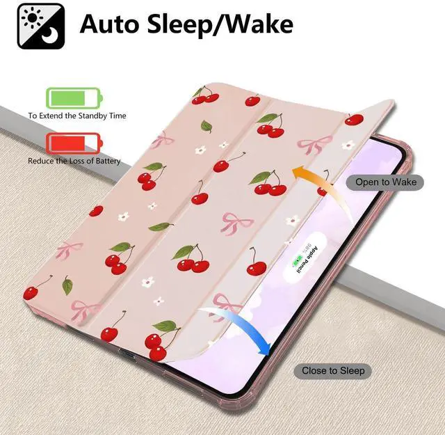 Protection: This cute kawaii bowknot case for ipad is made of two materials. The comfortable and soft silicone and high-quality durable TPU material provide a comfortable touch for the pad. The back of this girls cherry bows case for ipad is made of soft TPU, which provides full body protection and is more durable than traditional silicone materials. It is less prone to yellowing, prevents scratches, and maximizes the protection of your pad from damage and scratchesAuto Wake/sleepBuilt-in magnetic strip, our girls cherry bows case for ipad can automatically wakes or puts your tablet to sleep when the lid is opened and closed, protecting and extending battery life; precise cutout also completely supports newest touch ID key function. Built in pen holder ensures the safety of your pencil. Adjustable angleThe trifold stand shell design of this cute kawaii bowknot case forapple ipad can easily change the angle to meet your viewing and typing needs. This lovely watercolor case for ipad can be folded into a stable triangle, firmly supporting your pad. Whether it's work, study, or watching movies, they can meet your needsPerfect