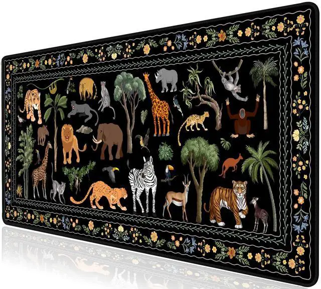Clean: Modern black large desk pad equipped with a waterproof coating, jungle animals desk matt for desktop resists liquid spills. The computer mat for desk is washable: hand wash or machine wash. Water resistant and heat resistant material makes this gaming mouse pad easy to clean. Simply wipe the surface of the desk mouse pad with a wet cloth. The desk cover protector will air dry quickly in its natural state and is ready to use after air drying
