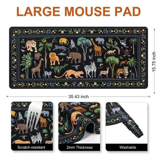 Pad Size: XXL mouse pad measures 35.4" x 15.7", this black cute wild animals desktop mat provides ample space for your mouse, gaming keyboard, and other desktop essentials. Its large size of desk cover mat keeps your workspace neat and organized, perfect for both gaming and office use ^^