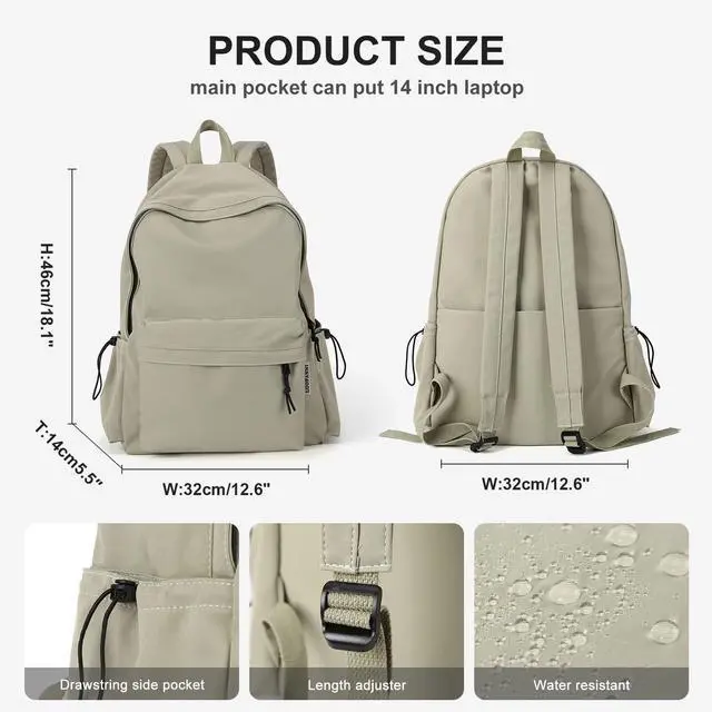 STURDY MATERIAL: Our backpack take sturdy and practical high quality water resistant nylon, the material is anti-tear and easy clearing. Sturdy two-way zipper, smoother, flexible opening and closing. Adjustable padded shoulder straps for carrying comfortable. Side pockets with buckle to avoid stuffs drop down.