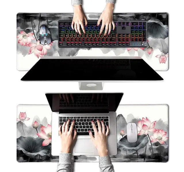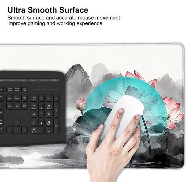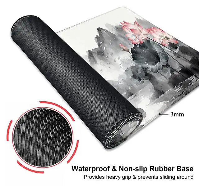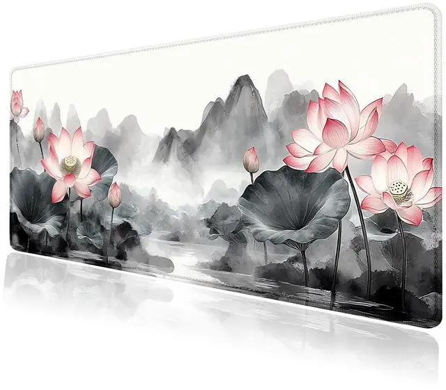 Vintage Lotus Mountain Japanese Large Mouse Pad, Desk Mat Computer Keyboard Pad Non-Slip Rubber Base Waterproof with Stitched Edges for Laptop Gaming, Office & Home 31.5 x 11.8 Inch