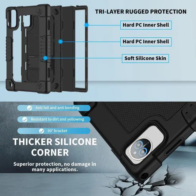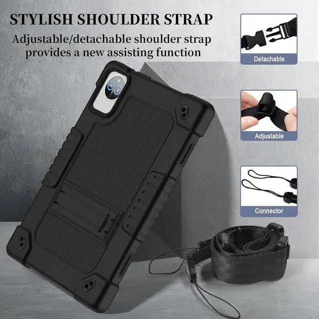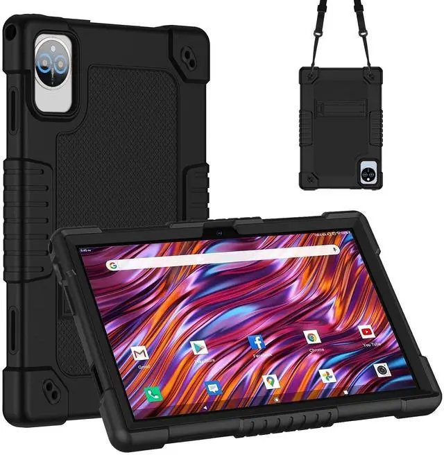 JBuwsdan Compatible With for ZONKO Model D106 10 inch VOZIZOV D106 Tablet 2024 Case Silicone Hard Back Hybrid Cover Built in Kickstand Shoulder Strap for