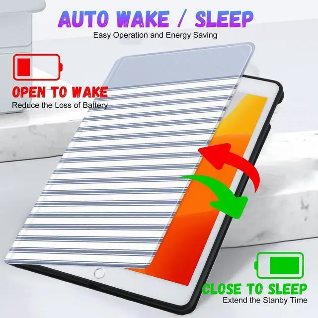 Auto wake and sleep: your tablet automatically wakes up when the case is opened and sleeps when its closed. This feature helps save battery life and enhances the overall user experience with smart convenience