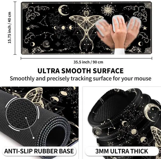 Lycra clothSize: 35.5" x 15.75" x 0.12" /900mm x 400mm x 3mmExtended SizeThis long mouse pad is big enough to fit your desk, to accommodate a mouse, gaming keyboard and other desk items. Smooth-Gliding SurfaceFeaturing a smooth-gliding microfiber surface that promotes enhanced precision, the Ovenbird mouse pads for desk is ideal for gamers, graphic designers, animators or anyone spending long hours at the computer. Non-slip Rubber BaseThis large mousepad gaming is made of soft and dense rubber with non-slip texture on the back side; together, the texture and thickness keep the desk mouse pad always firmly in place. Durable, WashableThanks to the up-to-3mm thickened design and stitched edges, this cool computer mouse pad avoids the problem of frayed edges and stands up to regular use. The desk pad for keyboard and mouse features a washable surface that can be easily cleaned with a damp cloth.