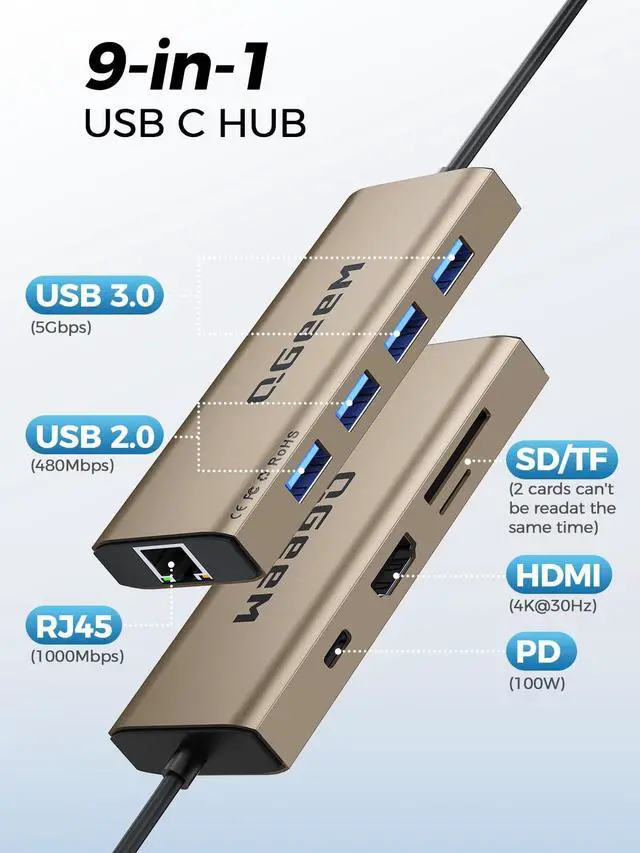 ^^ 1Gbps Hyper Speed: 1000Mbps Gigabit Ethernet port enables stable connection and you can say goodbye to wifi lag. The built-in SD/TF card slot can read 2 memory cards. ^^ 100W