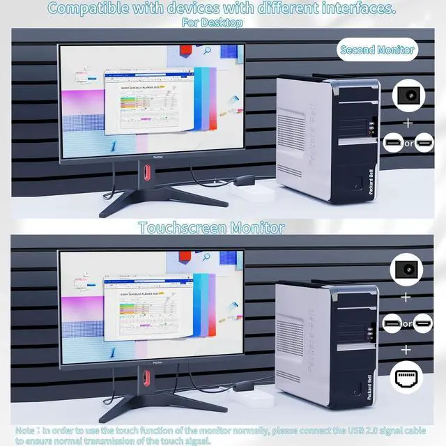 Its blue light reduction and flicker-free technology ensures a comfortable visual experience and reduces eye strain. ^^ Adjustable Bracket & HDR TechnologyThe bracket can rotate 270 degrees to the right, and the angle can be adjusted outward and inside to find the perfect ergonomic position. This flexibility allows you to optimize your workspace and create a multi-monitor setup that enhances productivity. 4K monitor HDR mode provides deeper and more realistic colors, offering a superior visual experience. ^^ Versatile ConnectivityEquipped with Audio Port/DC Power Port/USB-B Touch Port/2 DP Ports/2 HDMI Ports, this touchscreen monitor can be easily seamlessly connected to multiple devices including laptops, PCs, smartphones, gaming consoles etc, improving your work efficiency and gaming fun.