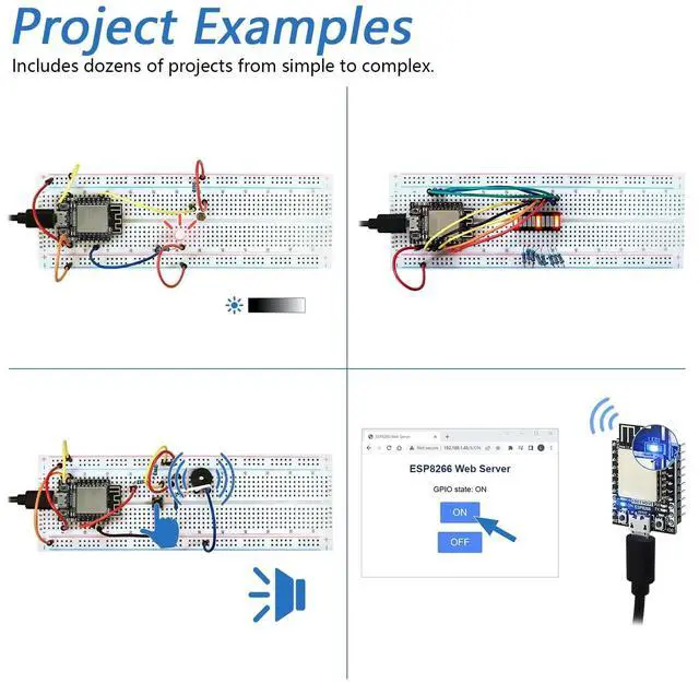 Overview: ESP8266 is a powerful and small controller with onboard Wi-Fi. This kit helps you learn and use it with its tutorial and project examples. We provide free technical support to help you with any questions and problems.
