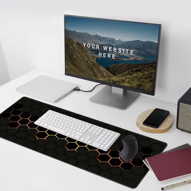 Hexagon Honeycomb Golden Large Mouse Pad, Gaming Desk Mat, XXL Extended Keyboard Desk Pad, 35.4"x15.7" Non-Slip Rubber Base Big Mousepad with Stitched Edges for Home and Office