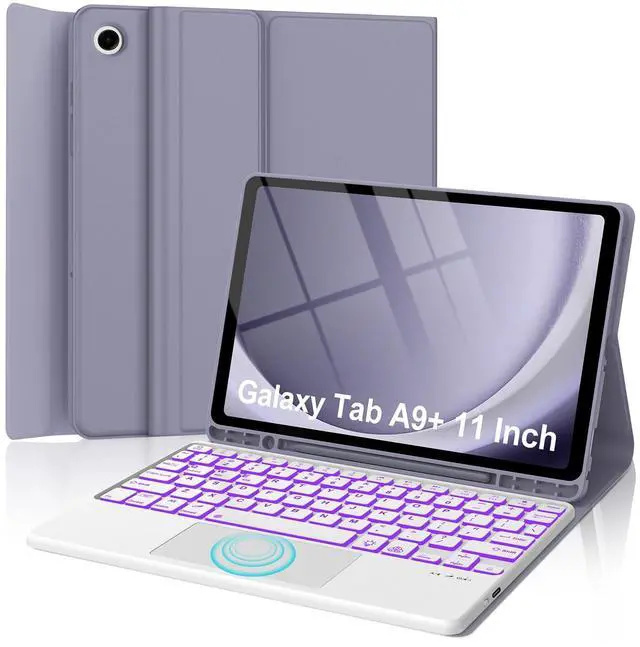 KVAGO Galaxy Tab A9 Plus Case with Keyboard 11 inch, Smart Touchpad, 7 Colors Backlit, Detachable Folio Keyboard Cover with S Pen Holder, PurpleProduct