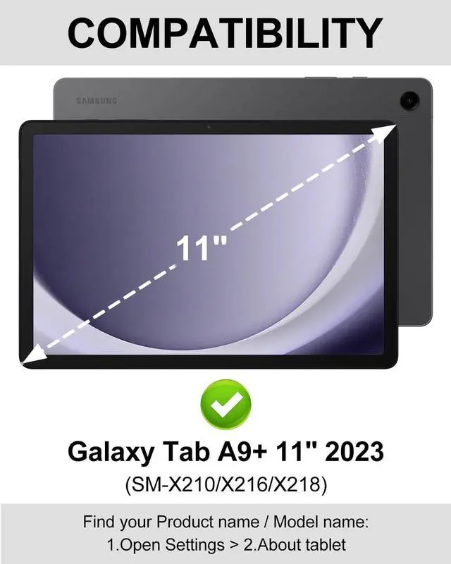 Package List: 1*Samsung Galaxy Tab A9 Plus Case1* Wireless Backlit Keyboard1* Charger Cable1* User Manual