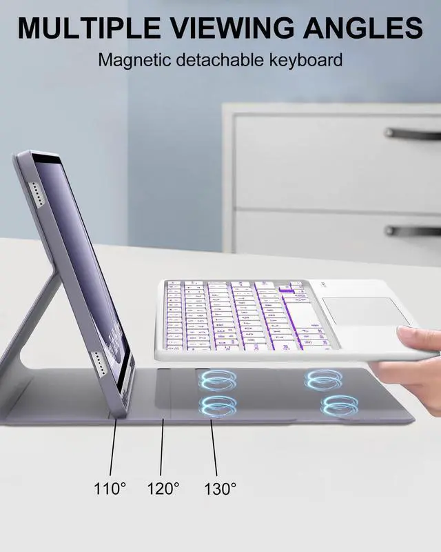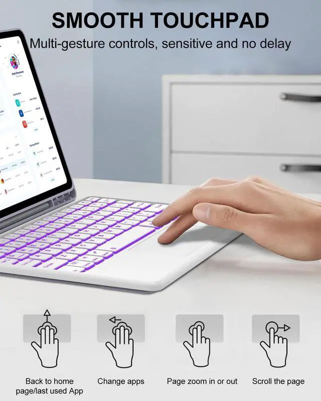 Bluetooth wireless backlit keyboard: contains 7 color backlights and 3 brightness levels. The edge-to-edge layout of well-spaced keys helps ensure familiar laptop-like typing. Comfortable and Responsive.