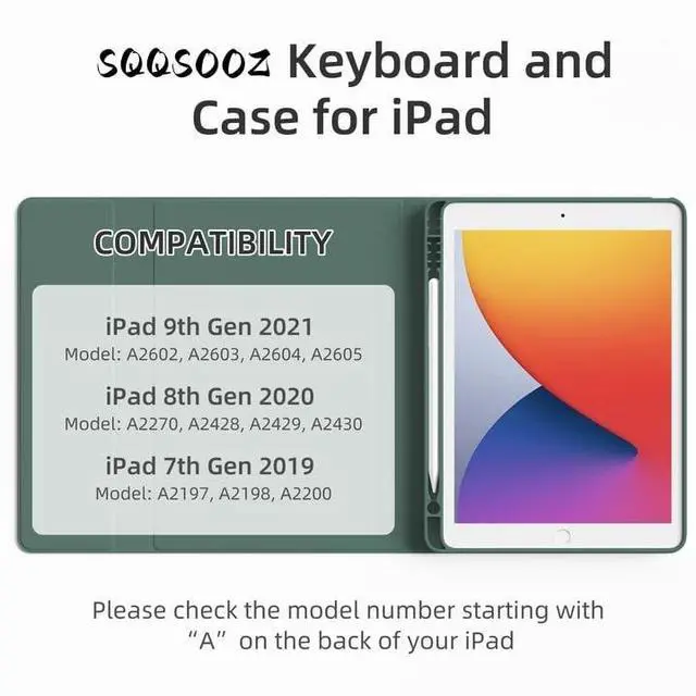 SQQSOOZ Case for iPad 9th 8th 7th Generation 10.2 inch Keyboardwith Pencil Holder ^^ Magnetic Wireless Detachable Keyboard ^^ Multi-View ^^ Slim ^^ Auto Sleep/WakeSQQSOOZ keyboard case is a very good choice that durable, portable, colorful, functional. If you're looking for a protective case for your device. Keyboard Case for iPad 10.2 inch: for iPad 9th