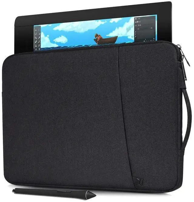 External Dimensions: 16.5 x 11.5 x 1.2 inch(42 x 29.2 x3cm). Please measure your tablet sleeve with internal dimensions before your purchase. (Does not include pen and drawing tablet) ^^ Water Resistant & Slim LightweightThe drawing tablet sleeve bag made of high-quality waterproof Canvas fabric, which obstructs water and vapor effectively. Don't worry about your laptop and accessories splashing water or rain. Super slim and lightweight, it can easily be transported inside another bag, backpack or briefcase. ^^ Extra Pocket & Smoothly ZipperExtra pocket in front provides enough space to keep pens, charging cables organized and other accessories. Zipper glides smoothly and convenient access to your laptops. ^^ Shockproof Soft Lining & Side HandleEspecially soft and anti-static, the drawing tablet carrying bag of soft lining can effectively absorb impacts and reduce damages caused by accidentally bumping & scratches. The side handle helps you carry easily when you want it as a handbag. ^^ Compatible Drawing Devices Fit for XP-PEN Artist12, XP-PEN Artist 13.3 Pro 13.3 Inch, XPPen Artist Pro 14, Huion KAMVAS Pro 13 GT-133.