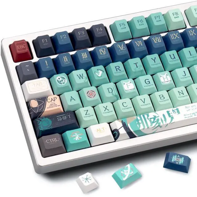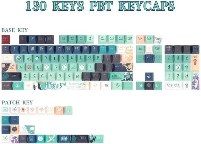 Only Keycaps Including 130 keys keycaps and a keycap puller, Not include keyboard, the keyboard is just for display not included. ^^ Widely Compatible The green anime keycaps set consist of 130 keys, suitable for 61/64/68/75/84/87/96/98/104/108 mechanical and optical keyboards, and any "+" Key switches, it is a good choice for you to DIY your mechanical keyboard. ^^ Cherry Profile Keycaps Green Anime keycaps are made of cherry profile, which is ergonomic and comfortable typing keycap, cherry keycaps provides you with a more natural and comfortable typing experience. ^^ PBT Custom Keycaps These are Dye Sub keycaps made from thick PBT material, durable and brightly coloured, with beautiful patterns that won't fade with prolonged use.