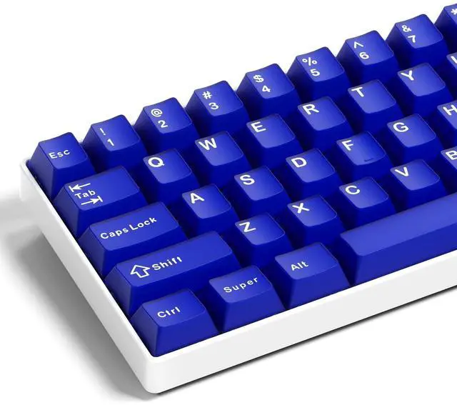 Keycaps: A vibrant, deep blue shade inspired by the iconic Klein Blue. Soft blues for keycaps that have a jade-like or jelly-like appearance.