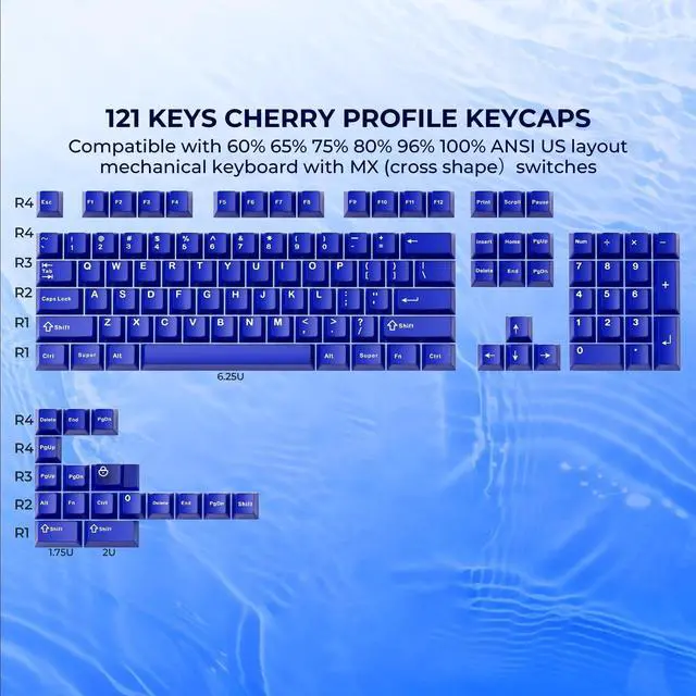 Keys Keycap Set: Ensures compatibility with a wide range of Mechanical keyboards, including full-size, TKL, and 65% layouts, designed for standard ANSI keyboards, which are common in the US and many other regions.