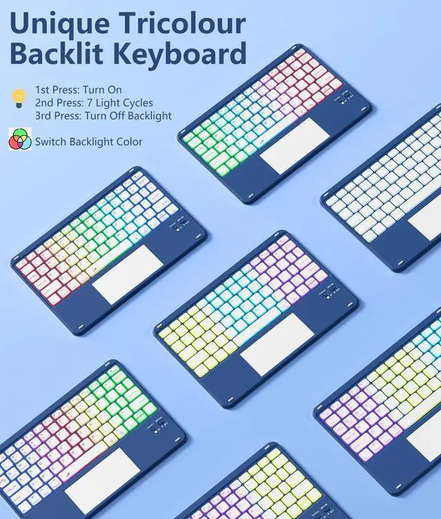 Colors Rainbow Backlit Keyboard: Keyboard for iPad Air 11 inch have 7-color rainbow backlight that can display three colors simultaneously. You can switch between static rainbow backlight mode and dynamic breathing light mode to make typing more fun and atmospheric. With three adjustable brightness levels, you can turn off the backlight when it is not needed ^^ Detachable
