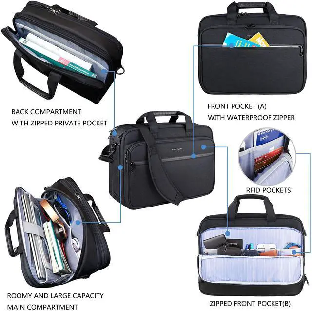 ^^ MULTI-FUNCTIONAL COMPARTMENT: Roomy compartments provide separated space for your 17.3 computer, iPad, files, wallet, notebooks and all your items. Padded laptop compartment offers perfect protection for your laptop from accidental bumps and shocks. RFID Pockets with Identity protection function protects date encoded on most IDs, credit cards and passports.