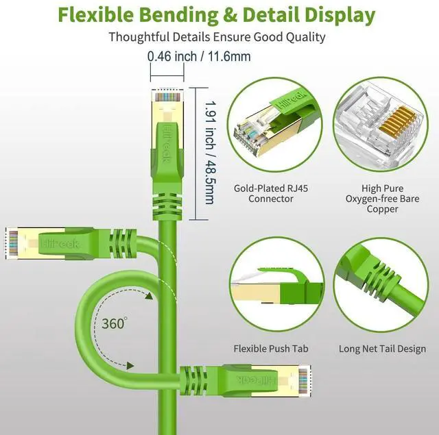 More Durable & Longer Lifespan: The HiiPeak Internet cables adopt pure copper wires and gold-plated RJ45 plugs feature corrosion resistance, anti-oxidation and more sensitive. The outermost layer uses thiken PVC jacket, premium material to ensure long lifespan quality and better performance. ^^ Premium