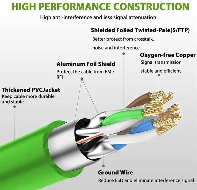 Quality & Stability: 26AWG Oxygen-free pure copper conductors provide this cable with superior and stable speed; The 4 twisted pairs bare copper wires are encased with aluminium foil shield and woven mesh shield; A multi-protection mechanism hugely improves interference elimination and crosstalk noise.
